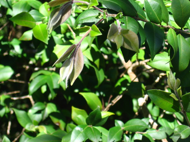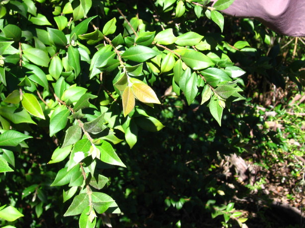 The photos above are from this young vigorous plant. It is on a drier slope a little way above our internal creek, exposed on the northerly fence line. Though it actually wouldn't be that dry, it's just exposed now. There is a felled Doryphora sassafras trunk about 20 metres down slope about the same distance in from the fence I am standing at. The trunk is about 60cm in diameter, it used to have sprouts arising from it, it finally died in the drought during 2002-3. The Sassafras was still about 30 metres from our internal creek and well above it. Sassafras don't normally grow in dry exposed locations, it just seems that way now with no trees to the north.