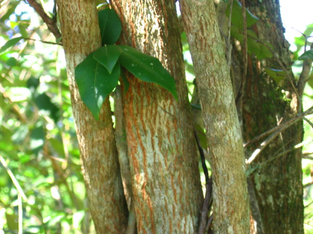 The longitudinal fissures in the bark always seem to maintain the tan/orange colour even on trees somewhat older than this sapling.