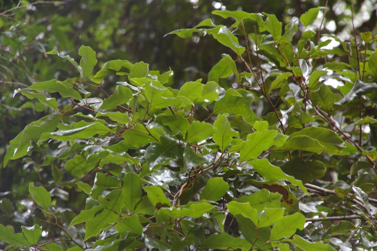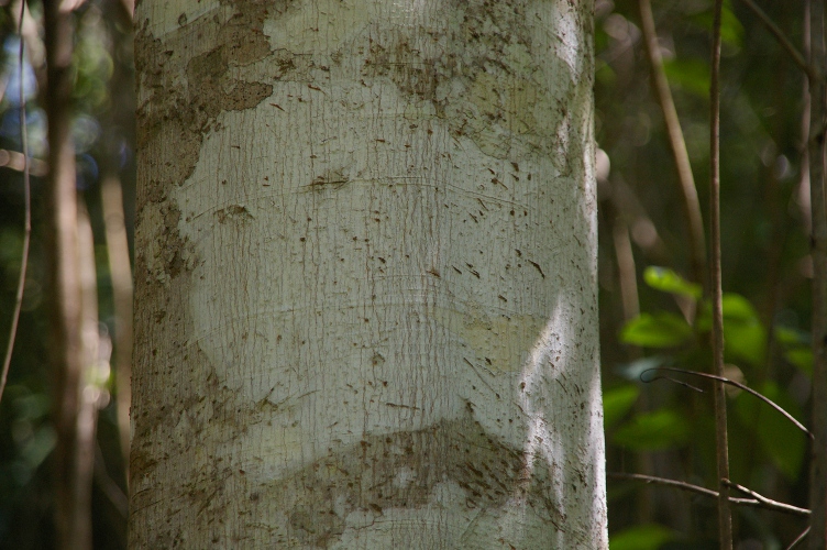 camera, no flowers left but I think there is one old fruit still there.The reason for this photo is I was not certain the flowers had actually come from the tree. I wondered if they were from a Ripongonum discolor that grows up the tree. I had only seen them in passing and there was no way I could be certain without a telephoto lens.